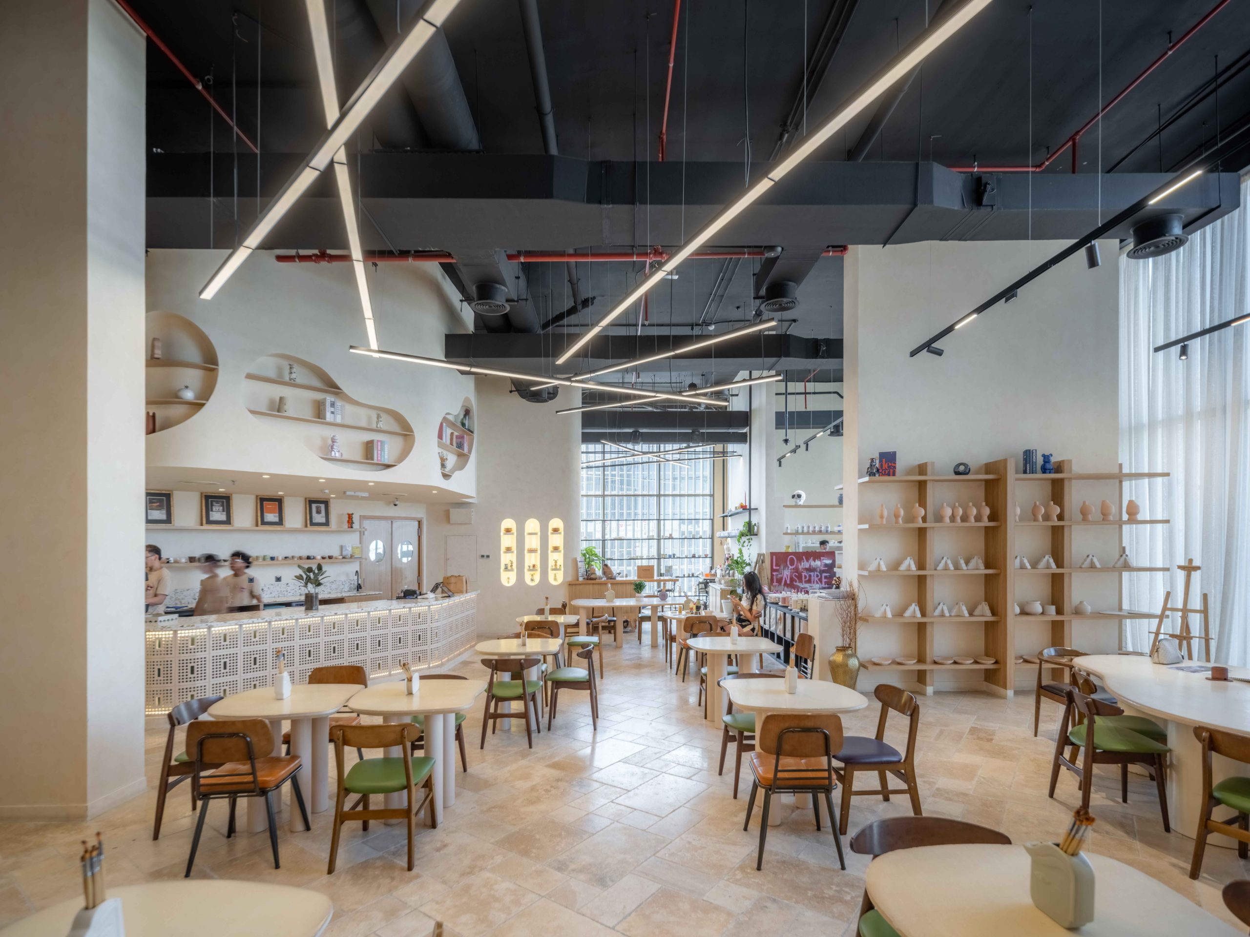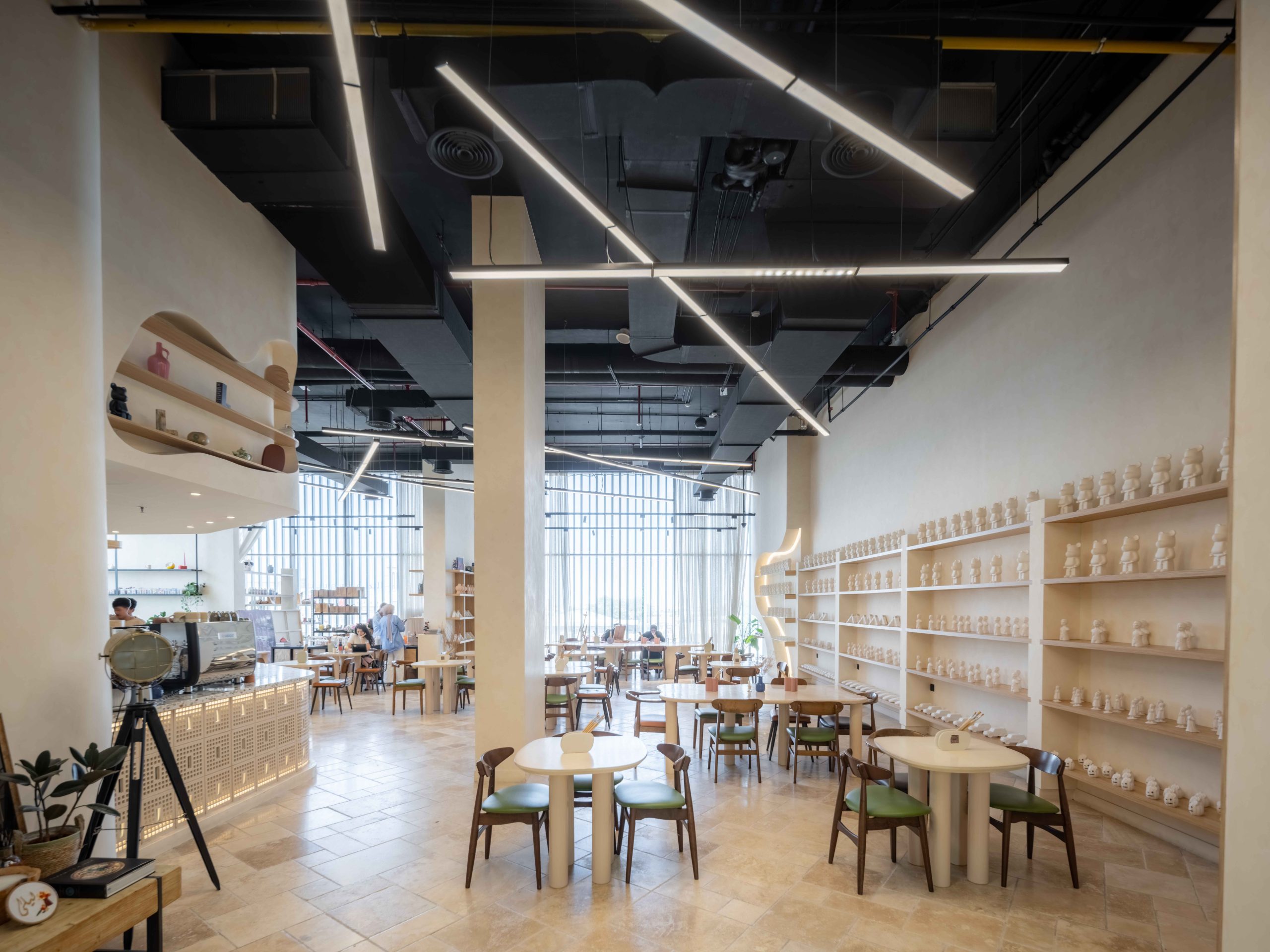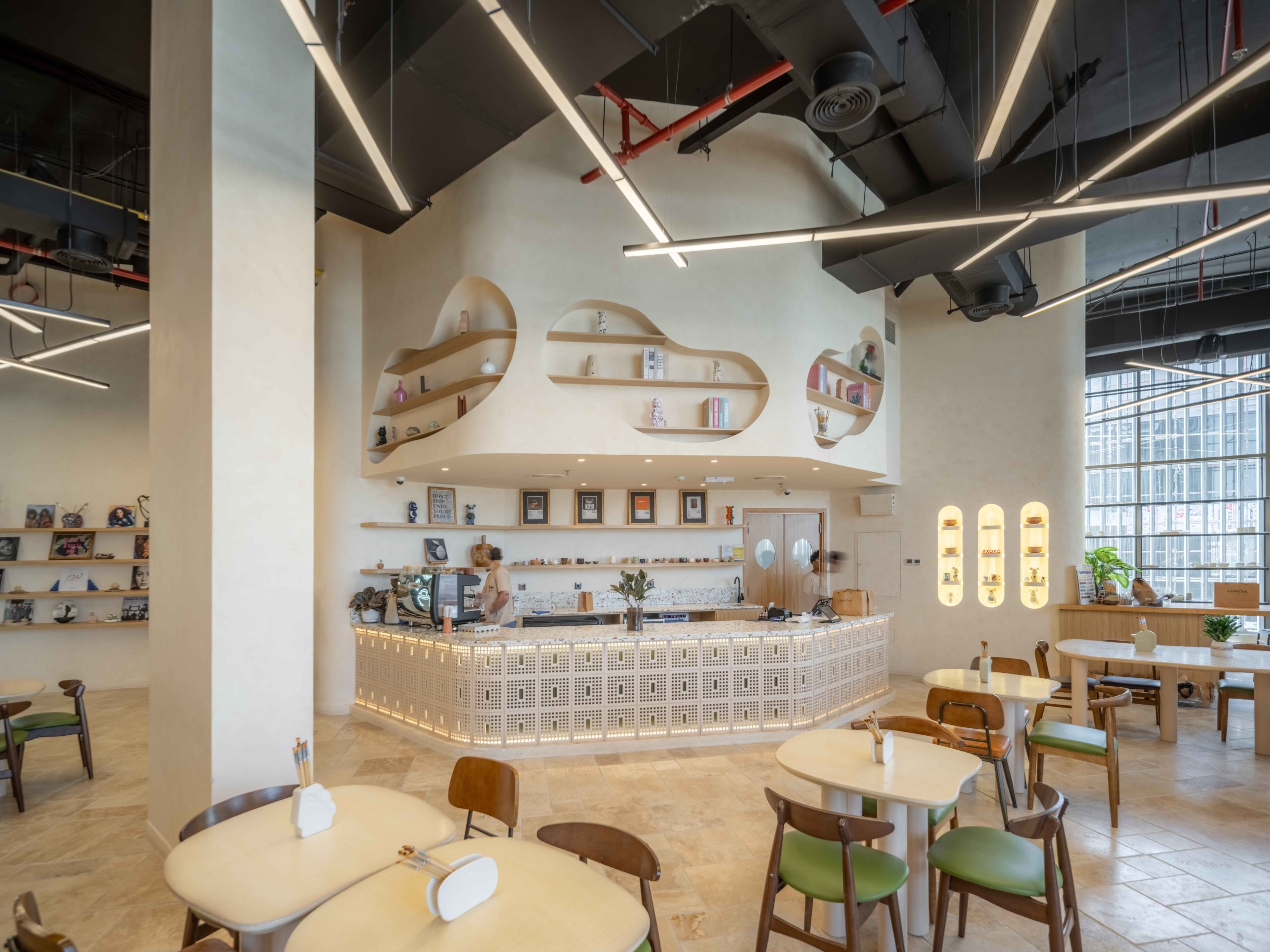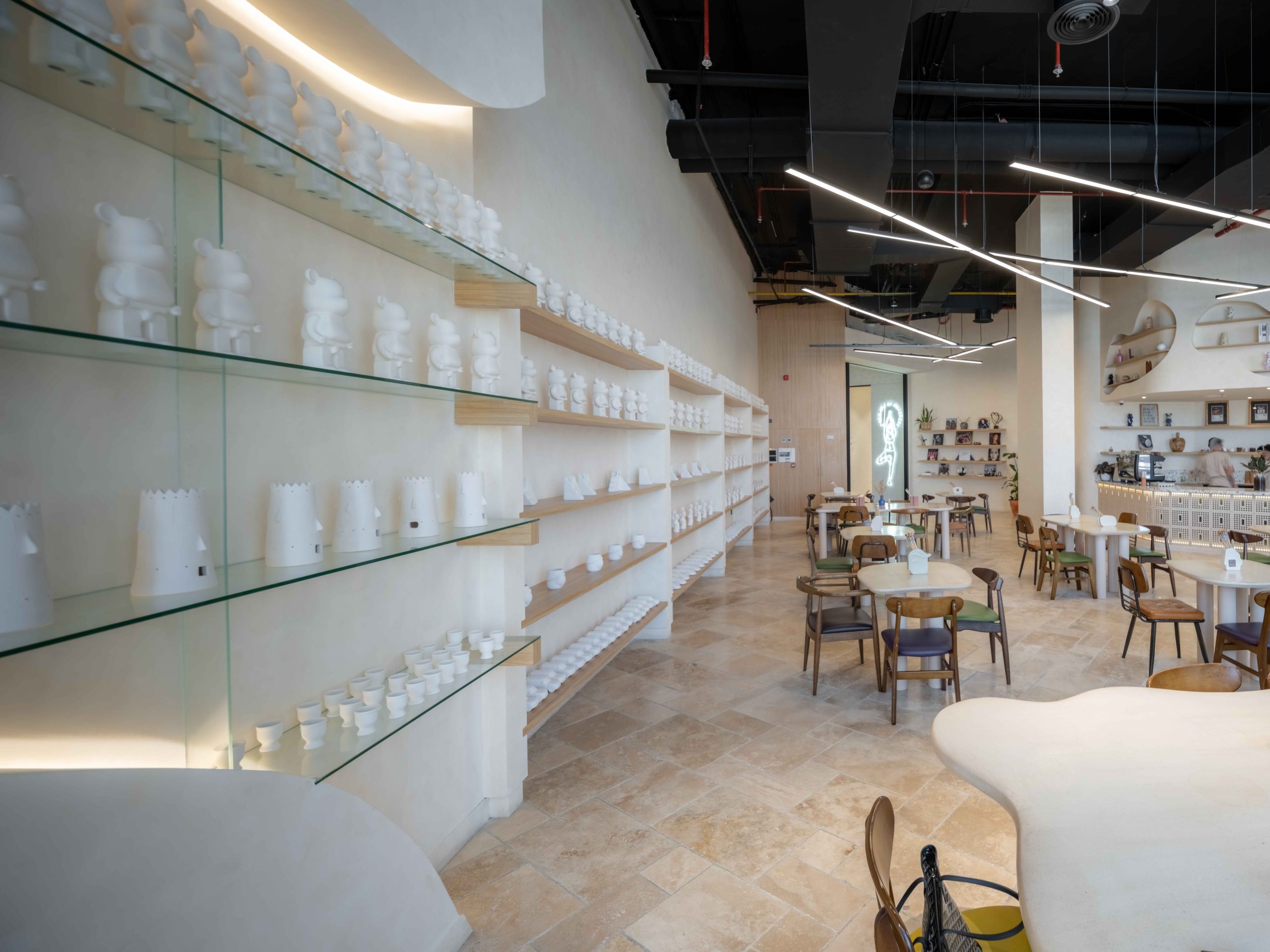 Limba Ceramics Café is a boutique café and creative venue in Mirdif, Dubai—where coffee culture meets craft. The interior blends warm neutrals, fine-grain textures, and a display-driven layout that foregrounds ceramics and curated shelving.