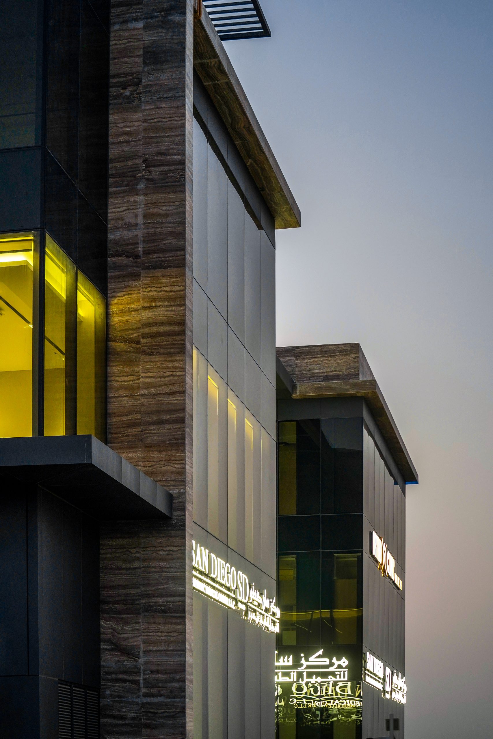 Day-to-night transitions to convey transparency, occupancy, and brand presence.